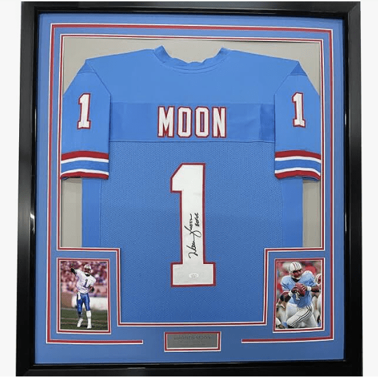 Warren Moon Houston Oilers NFL Hand Signed Authentic Style Home Blue Football Jersey